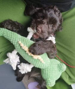 This is a small puppy with a big personality. With an adorably curly coat, he is spunky, fun loving, playful and affectionate. Enthusiastic and curious about life, he has a self confidence which means he adapts to new situations with ease.